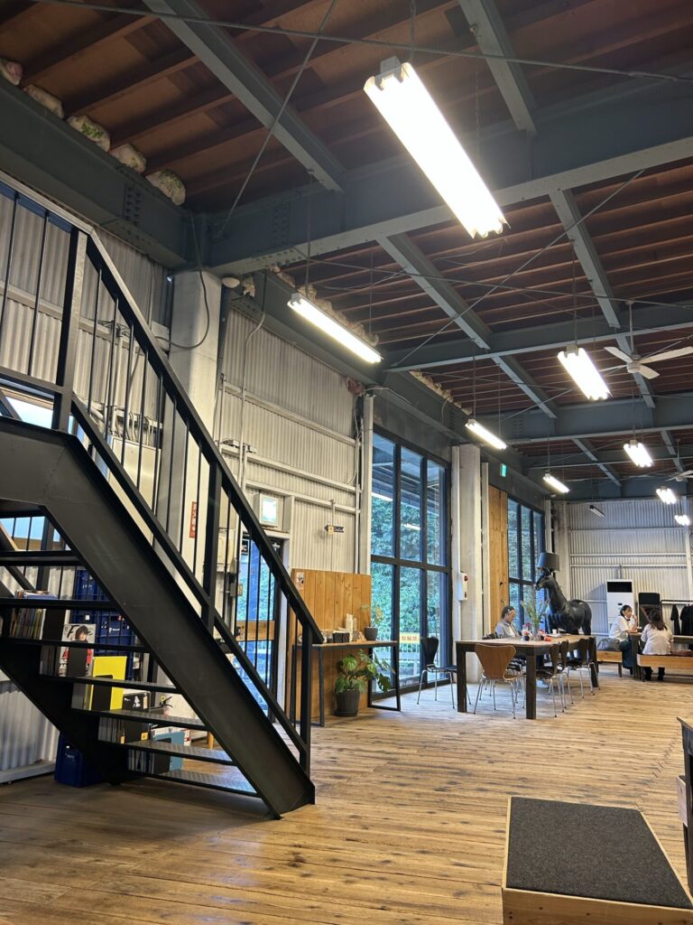 大きなレトロスピーカーから流れる90’sミュージックに心地良さを感じ